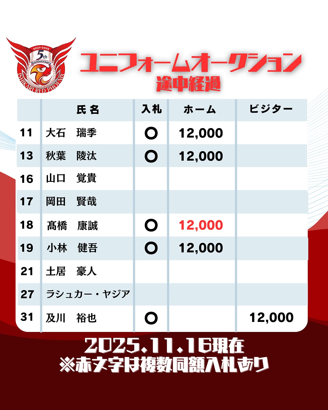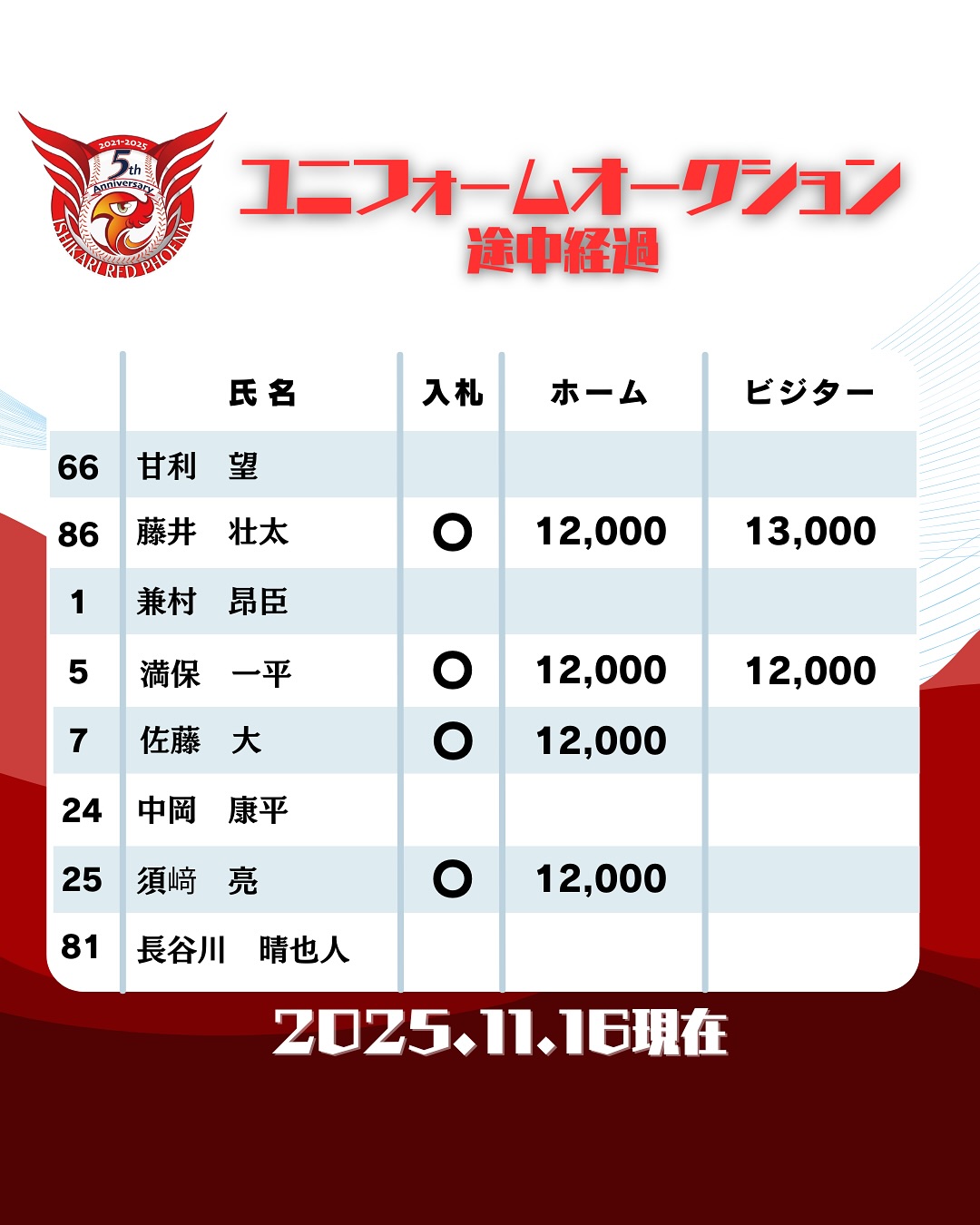 Tweet Share Hatena Pocket RSS feedly Pin it 記事のタイトルとURLをコピーする 16日(日)10時時点でのオークション経過速報‼️ 同額の複数入札も出始め、少しずつ動きが出ております❗️ 締切まで何度でも入札可能‼️ ⚠️入札期限は12月14日(日)⚠️ オークション会場はこちら オークション会場はこちら 第6回まちフェスいしかり参加情報! 前の記事 【2025.12.6】球団トライアウトのお知らせ 次の記事