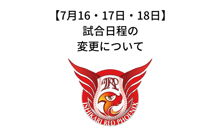 7月16日(土)、17日(日)、18日(月・祝)の試合日程が変更となりました。