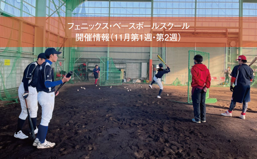 11月からはじまります、 フェニックス・ベースボールスクールですが、1週目と2週目は変則的なスケジュールとなっております。