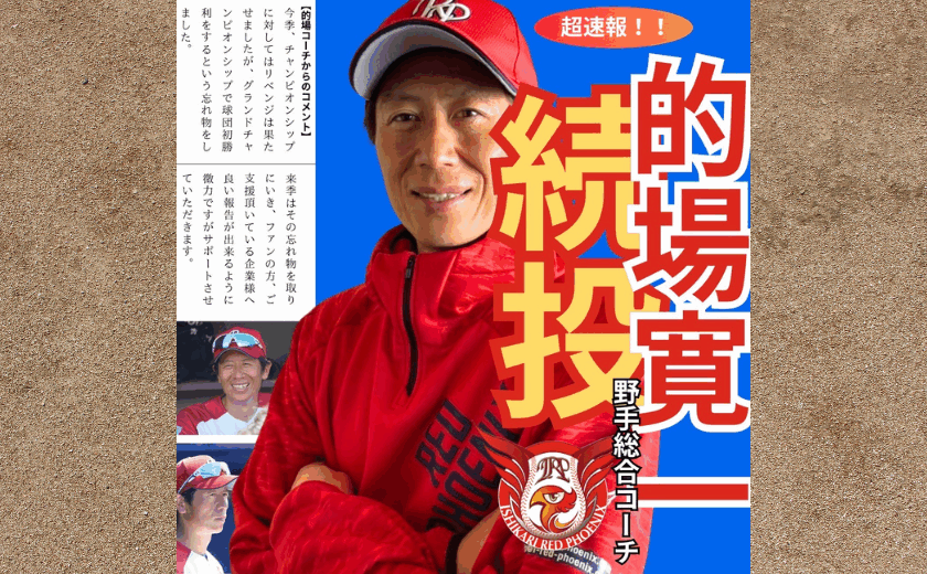 2022年から指導してくださっている、的場 寛一コーチが野手総合コーチとして2024シーズン続投いたします!