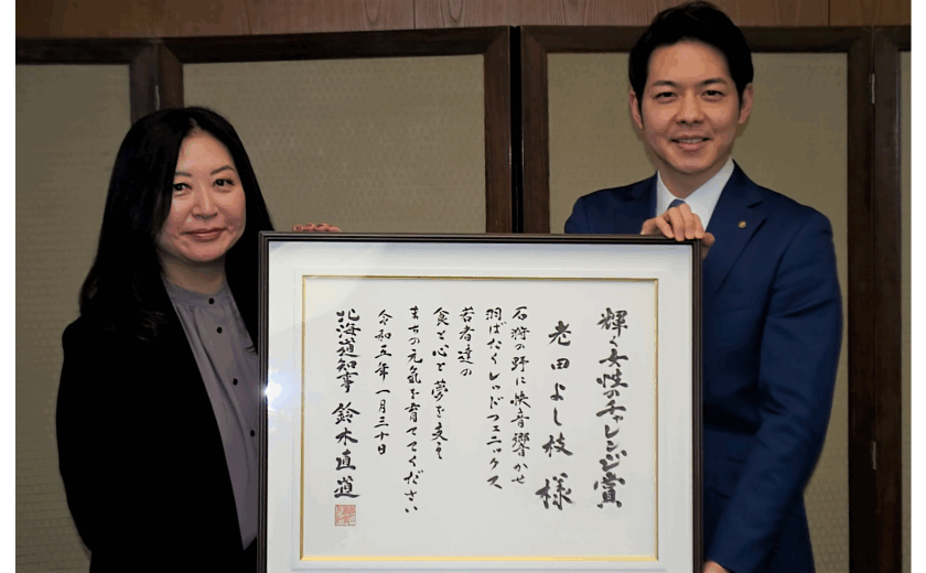 鈴木 直道北海道知事より表彰状を受け取り、2023シーズンへ向けて弾みとなりました。