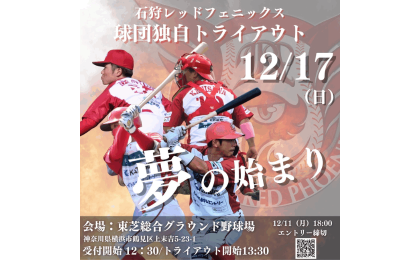 12月17日(日)に東芝総合グラウンド野球場にて、球団独自のトライアウトを開催いたします。